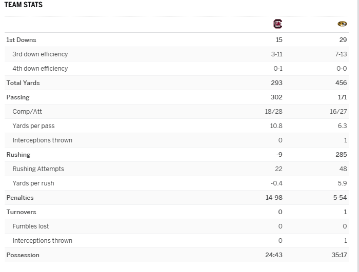 I have Mizzou winning this game 30-21 with the Gamecocks offense looking surprisingly alive but ultimately putting the defense in bad positions to lose the game.